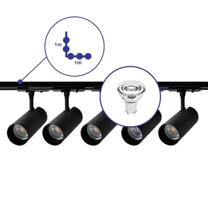 | Manufacturer Name | Complete L shaped 1-Phase Track Set Black incl. 5x Spot fixture + GU10 2700K 3W Dim – 1 x 1 meter i | |
