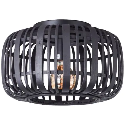 Brilliant Woodrow Ceiling Light Metal Bamboo Black Wood | 320mm - Suitable for 1x E27