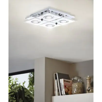 Eglo Ceiling Light Cabo Stainless Steel Chrome 4x2.8W 4x250lm - 830 Warm White | IP20 - Incl. 4x GU10