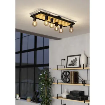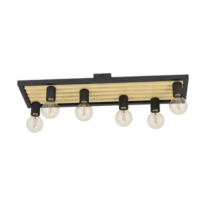 Eglo Ceiling Light Consett Steel Wood Black Brown | IP20 - Suitable for 6x E27