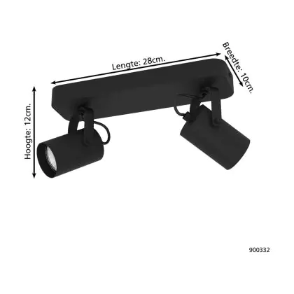 Eglo Ceiling Light Sorego Steel Black 2x2.8W 2x250lm - 830 Warm White | IP20 - Incl. 2x GU10