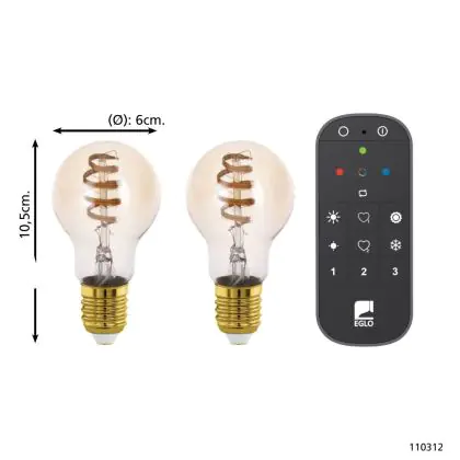 Eglo Connect.Z Smart LED Pear E27 Filament Amber 9.8W 360lm - 822-865 Tunable White | Dimmable - Replaces 25W