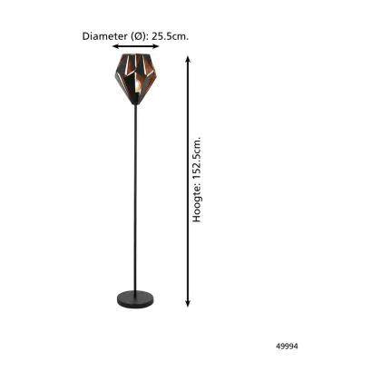 Eglo Floor Lamp Carlton 1 Steel Black Copper | IP20 - Suitable for 1x E27