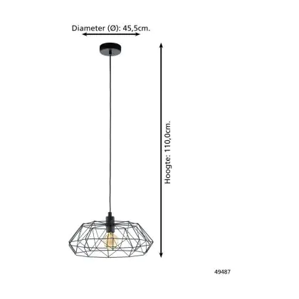 Eglo Pendant Carlton 2 Steel Black | IP20 - Suitable for 1x E27