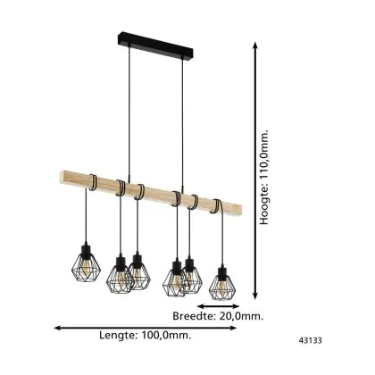 Eglo Pendant Townshend 5 Steel Wood Black | IP20 - Suitable for 6x E27