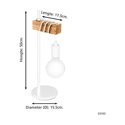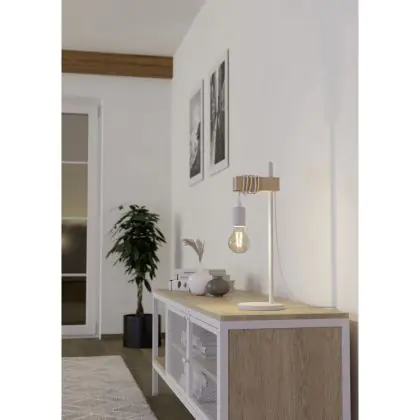 Eglo Table Lamp Townshend Steel White Wood | IP20 - Suitable for 1x E27