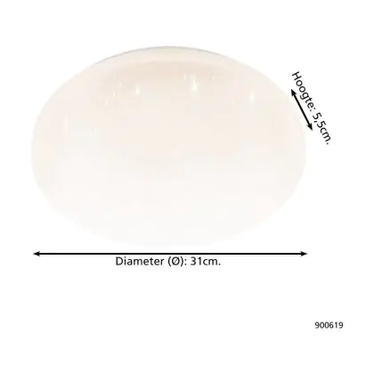 Eglo Wall and Ceiling Light Frania-S Steel White 15W 1800lm - 830 Warm White | IP44