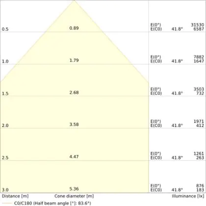 ![]() The colour code is a combination of colour rendering (CRI) and light colour (Kelvin). The first number indicates the colour rendering (1 = very poor colour rendering, 9 = maximum colour fastness). The second and third number contains the light colour. Example: the colour code 830 consists of good colour rendering (8) and warm white light (3000K). |