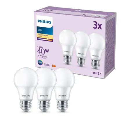 | Manufacturer Name | Box 3 stuks - Philips LED Lamp Mat - 40 W - E27 - Warmwit licht | |