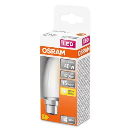 Osram LED B22D Candle Filament Frosted 4W 470lm - 827 Extra Warm White | Replaces 40W